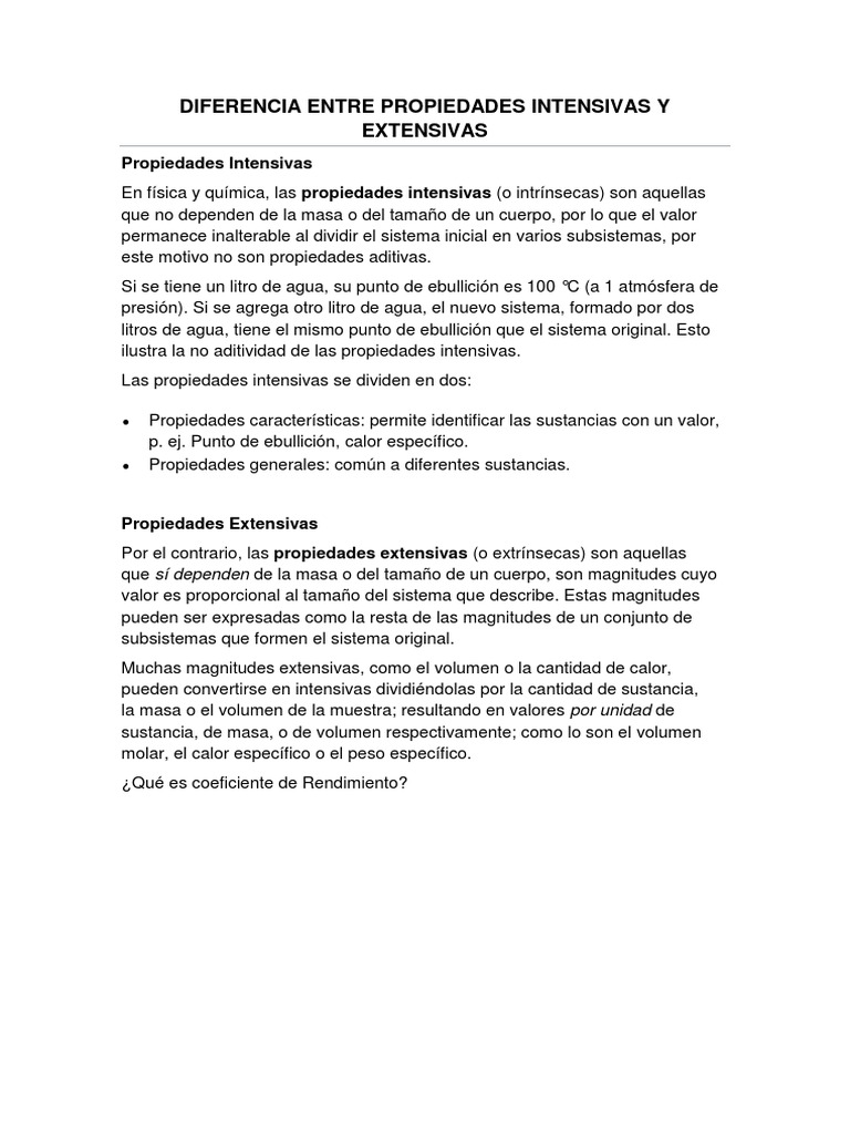 Diferencia Entre Propiedades Intensivas Y Extensivas Pdf Quimica Ciencias Fisicas